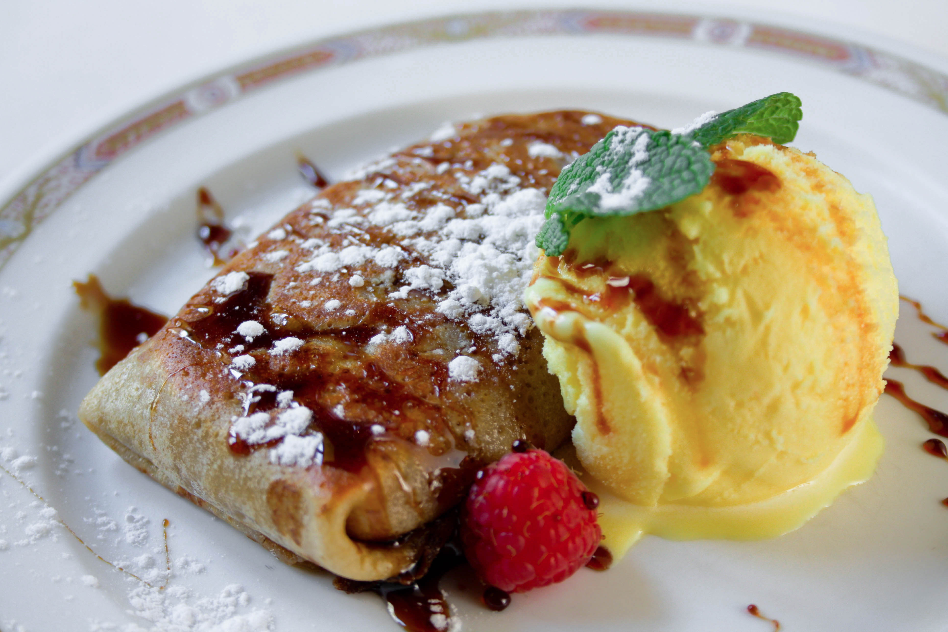 Crêpe con manzanas glaseadas y canela.