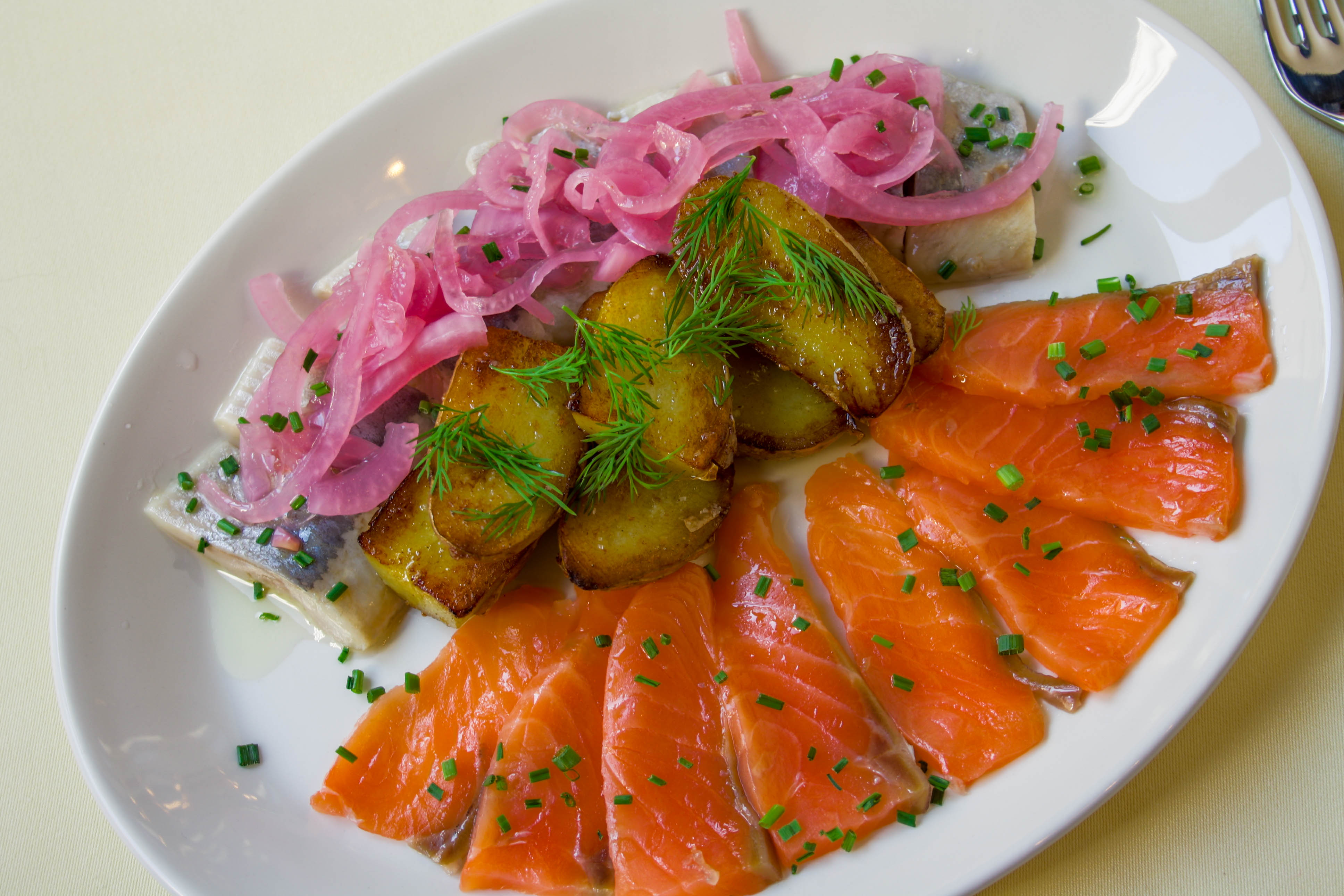 Arenques y salmón marinado.