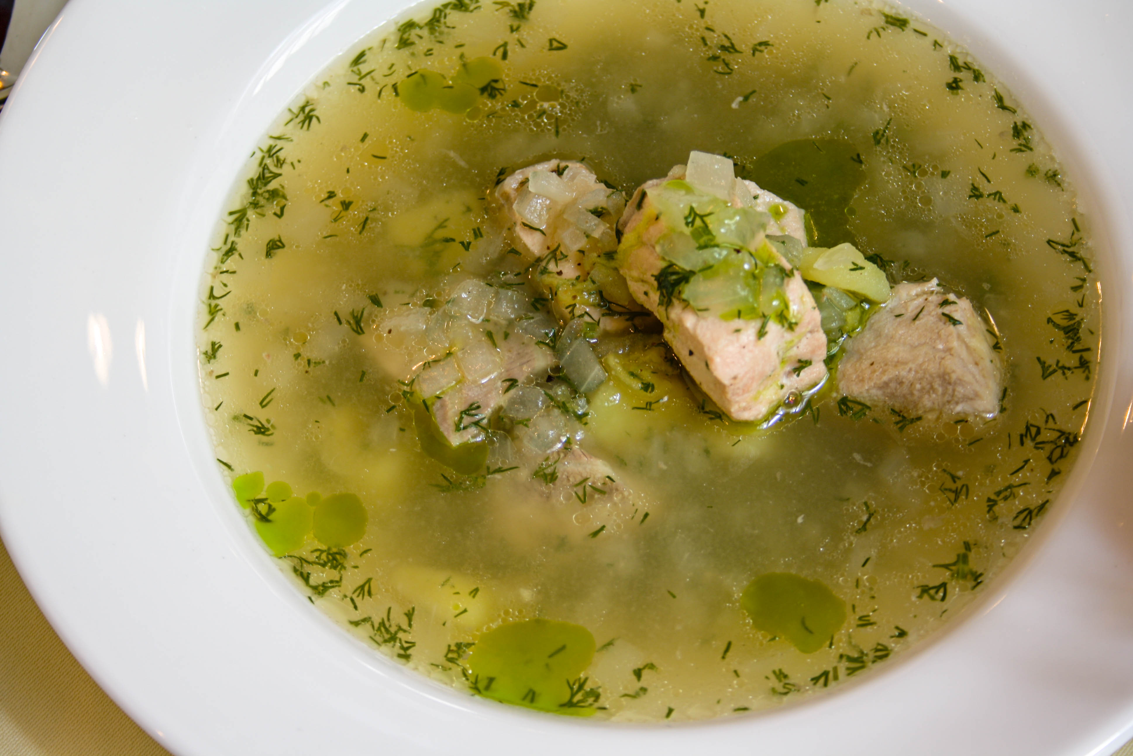 Sopa tradicional de salmón y esturión.